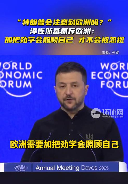 也正因此,泽连斯基现如今已经陷入崩溃的边缘,开始向欧盟喊话,寻求欧盟的同情与支持。1月21号,泽连斯基在出席瑞士达沃斯论坛的时候,就公开喊话欧盟,“必须要学会如何照顾自己”,而且泽连斯基还要求欧盟“学会适应没有美国人的帮助”。很显然泽连斯基对特朗普是彻底失去期待之后,把最后的期待与希望放在了欧洲身上。
